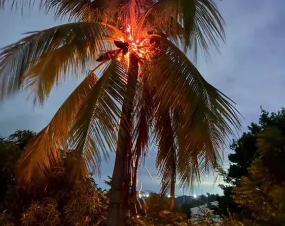 Raio atinge área rural de Santa Terezinha, destrói coqueiro e assusta moradores durante a madrugada
