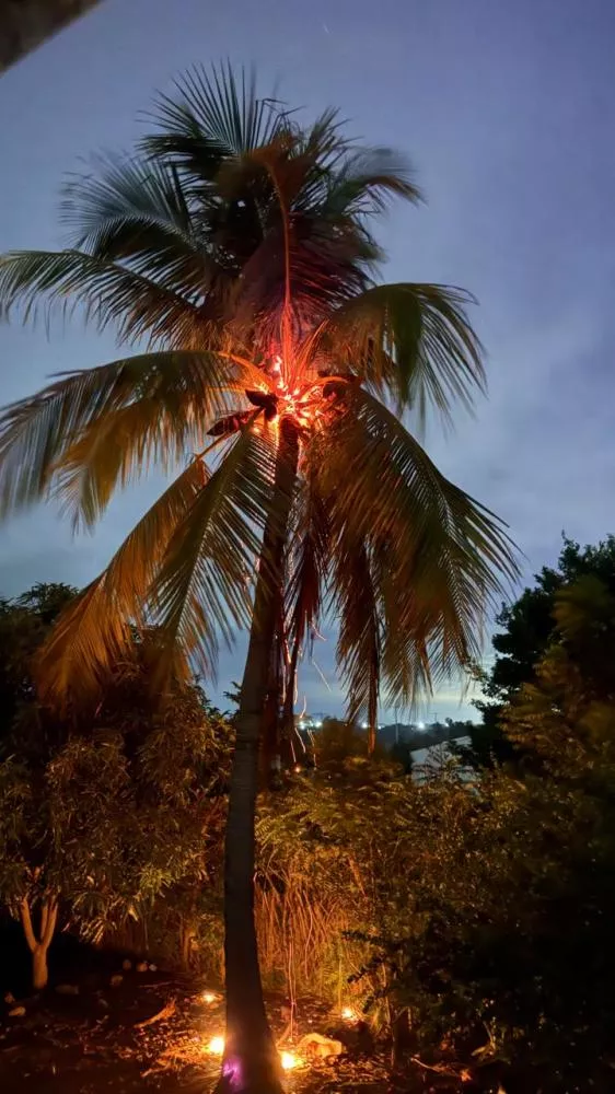 Raio atinge área rural de Santa Terezinha, destrói coqueiro e assusta moradores durante a madrugada